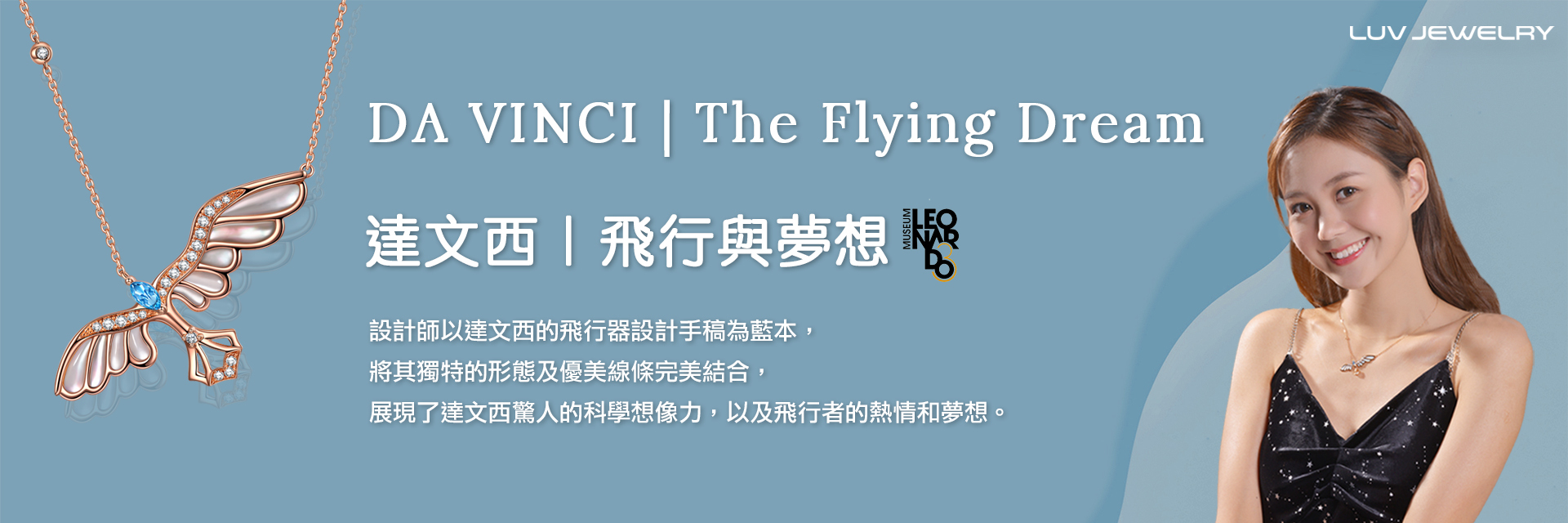 為紀念天才博學家李安納度·達文西 (Leonardo da Vinci) 逝世 500 週年,意大利國家級達文西博物館與 LUV Jewelry 攜手合作,傾力打造達文西「飛行與夢想」及 「達文西密碼」系列鑽飾,這也是達文西博物館首次與珠寶業界合作,透過鑽飾演繹達文西的獨特藝術天賦,每一件飾品也極具收藏價值,也必將成為各文藝愛好者的摯愛飾品。